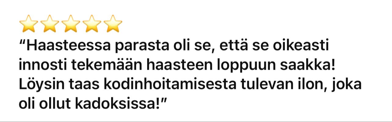 Olen aivan varma, että saat haasteen avulla sujuvamman kodinhoidon.