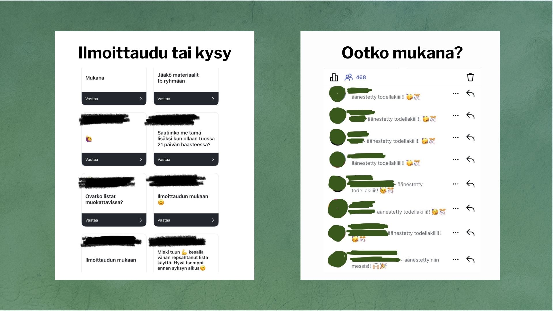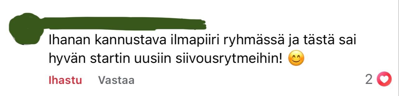 - Tuki ja mahtava tsemppi suljetussa yhteisössä. Voit tulla mukaan myös nimimerkillä.