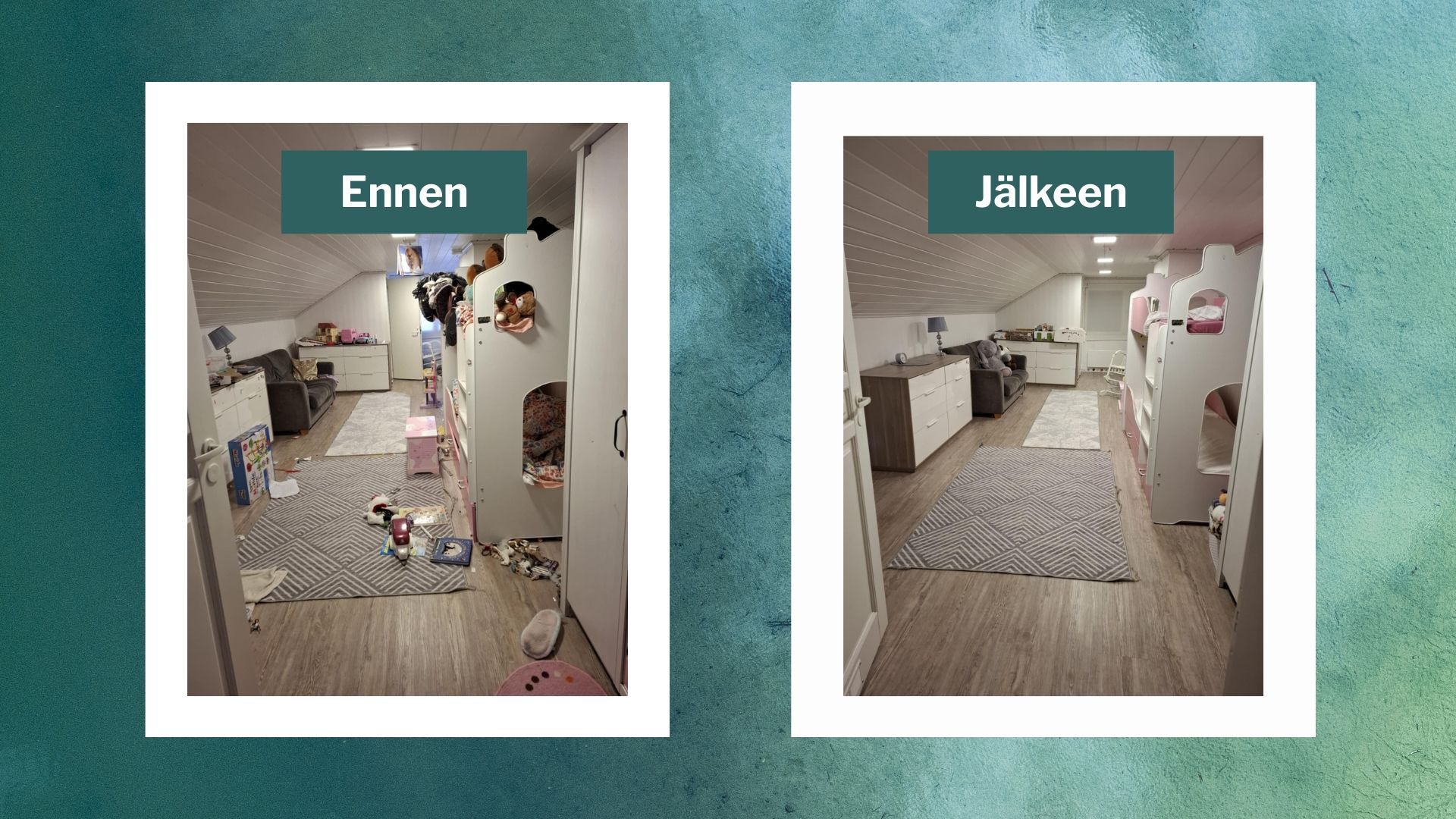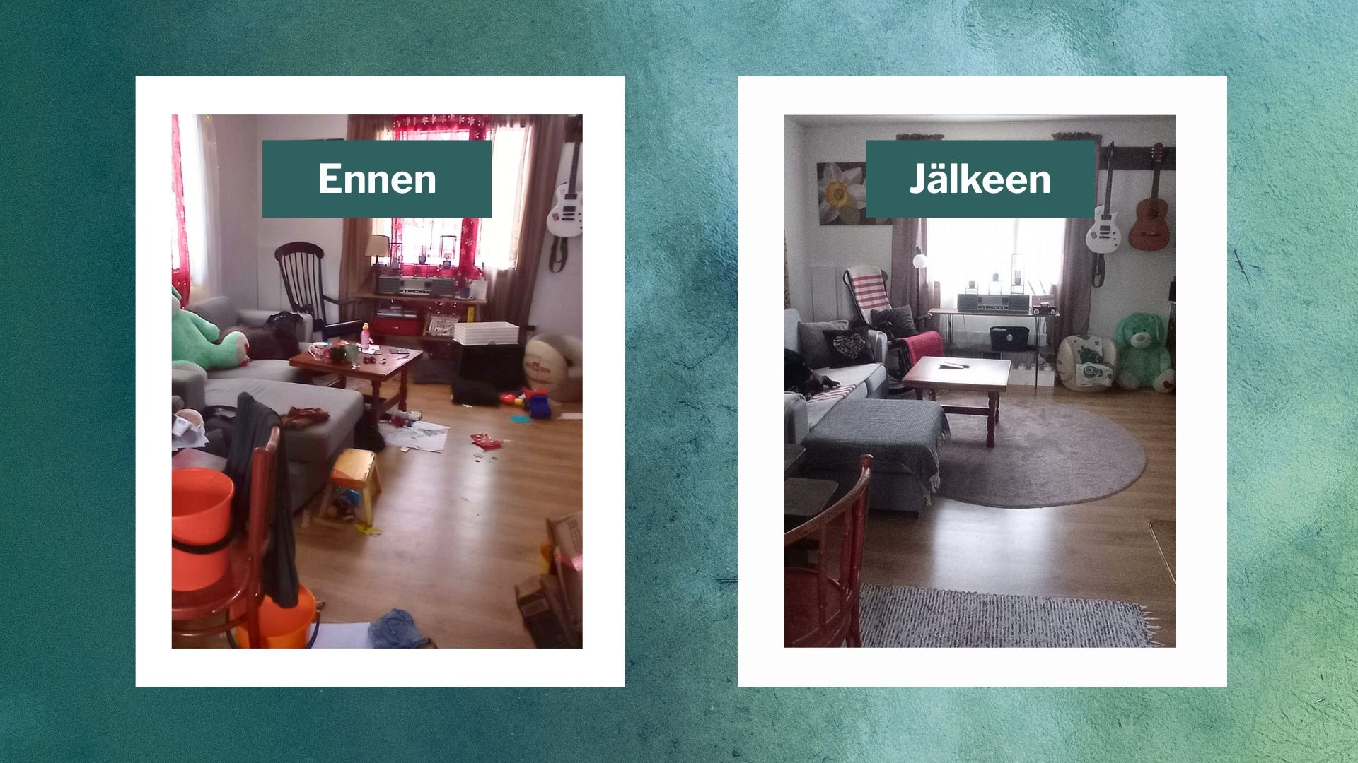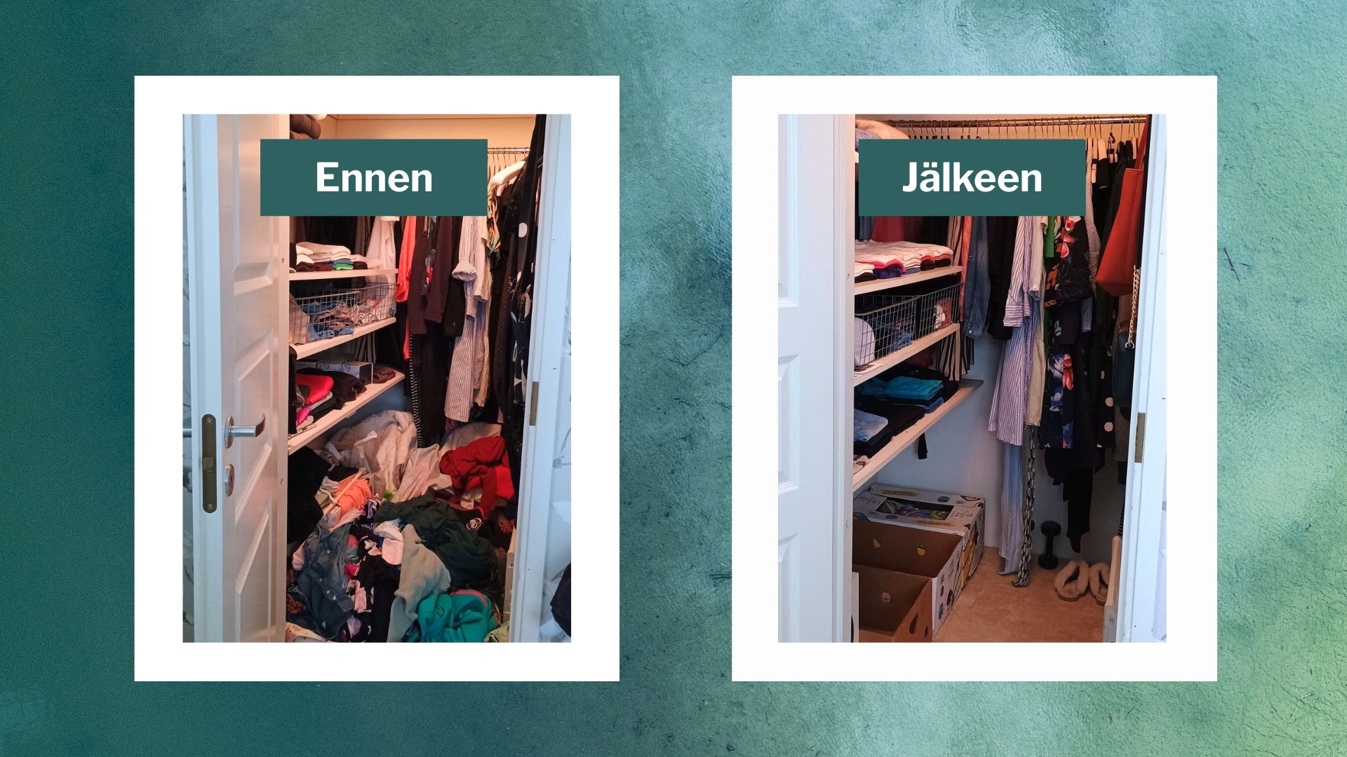 Kurssi syntyi omasta turhautumisestani: siivosin ja järjestelin, mutta se ei ollut koskaan pysyvää. Aina kun sain yhden kaapin järjestykseen, olohuoneessa odotti jo uusi kaaos ja jos viikonloppuna viikkailin vaatteita kauniisti paikoilleen, ne olivat parin päivän päästä taas pitkin lattioita.