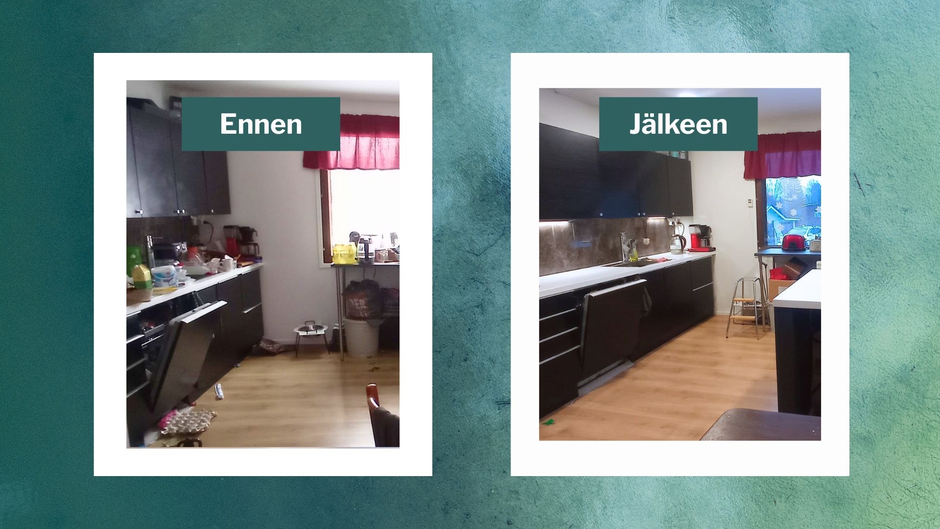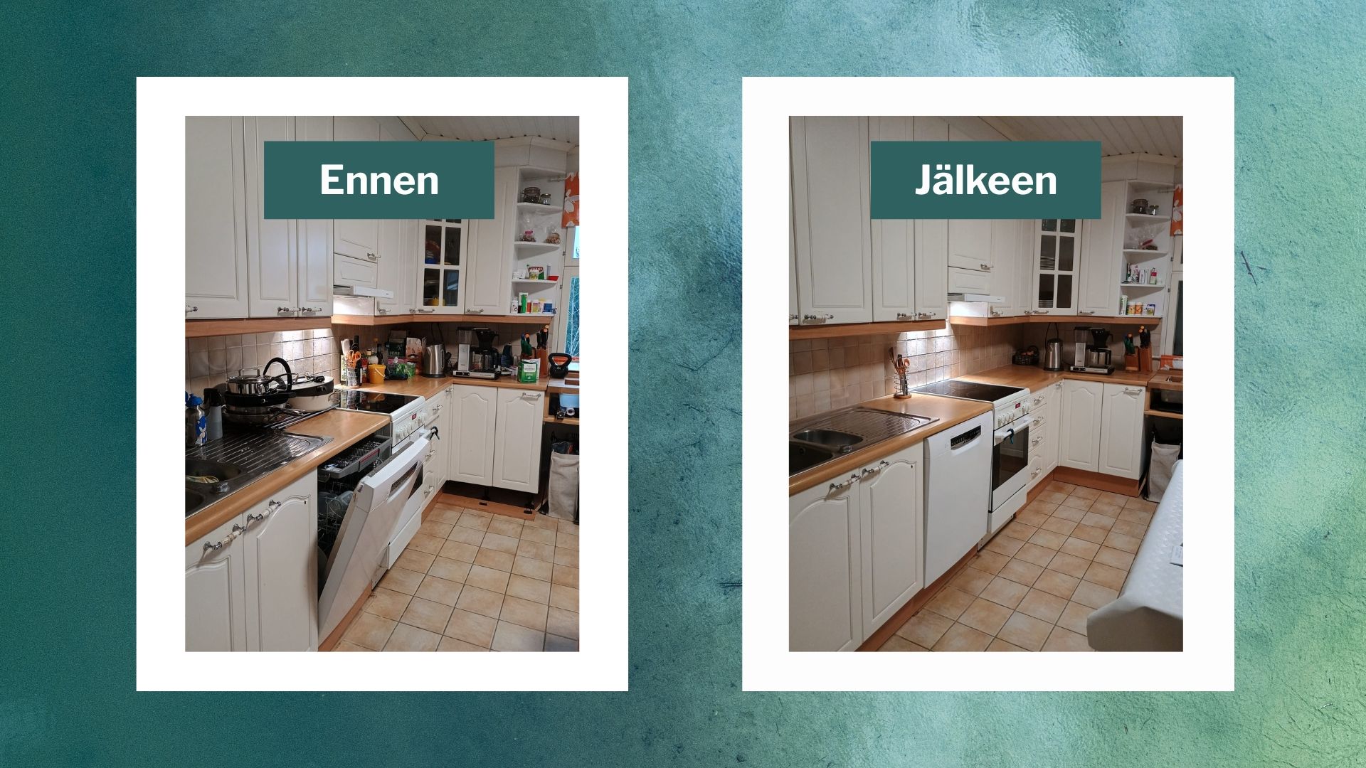 Kun lapset on hoidossa, päätät ottaa keittiön käsittelyyn. Purat kaapit tyhjiksi ja levität kaiken tavaran tasoille. Alkuun tuntuu, että täähän hoituu parissa tunnissa, mutta aika alkaa karata, päätökset käyvät raskaiksi ja kaaos leviää koko keittiöön.