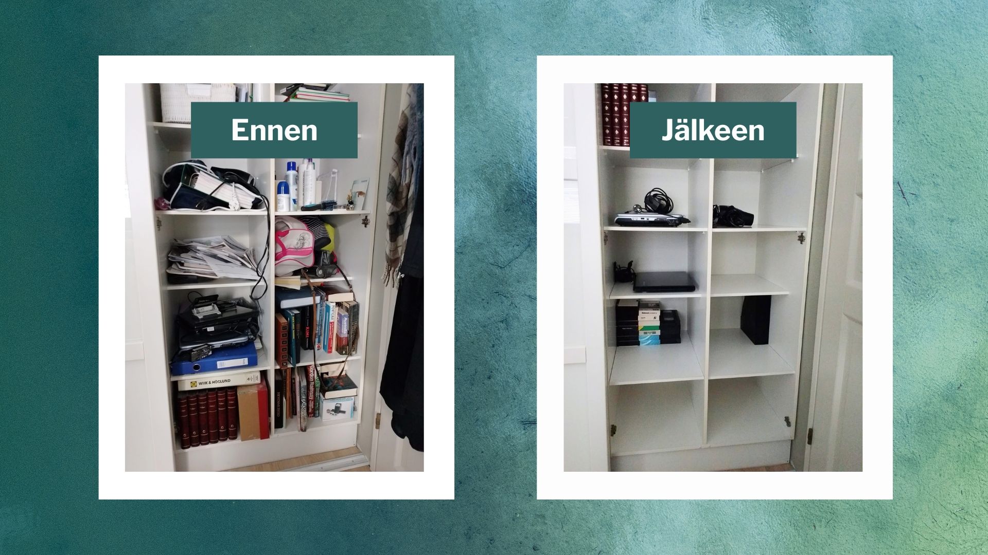 Se pinttynyt tavarakuorma, joka oli painanut häntä vuosia, oli vihdoin poissa. Tilalle tuli selkeys, keveys ja se ihana tunne: “tää on taas mun hallinnassa.”