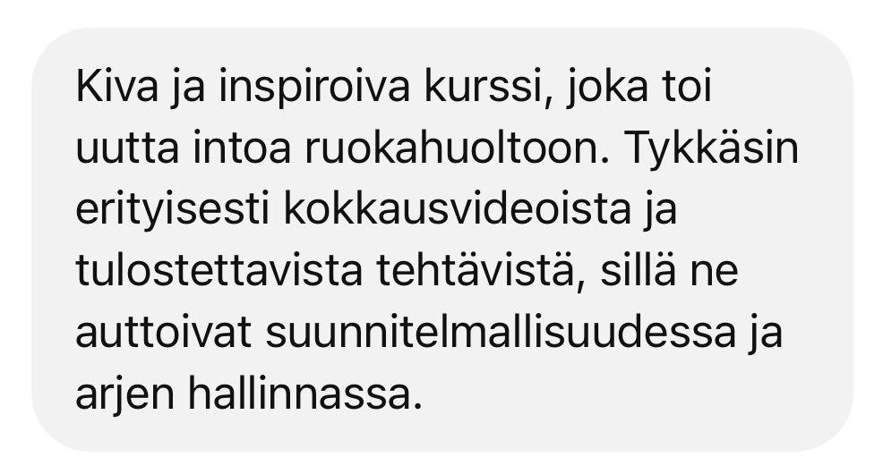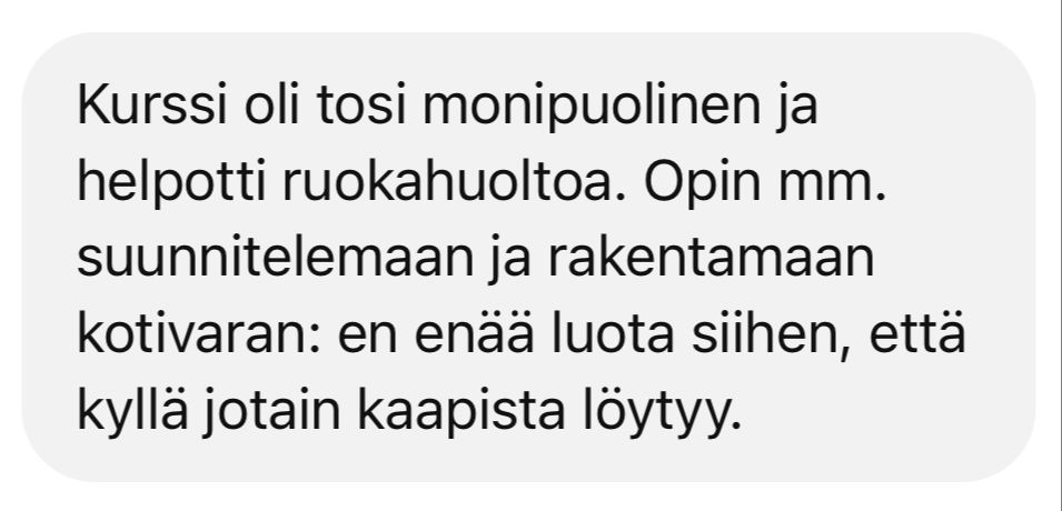 “Kurssi oli tosi monipuolinen ja helpotti ruokahuoltoa."