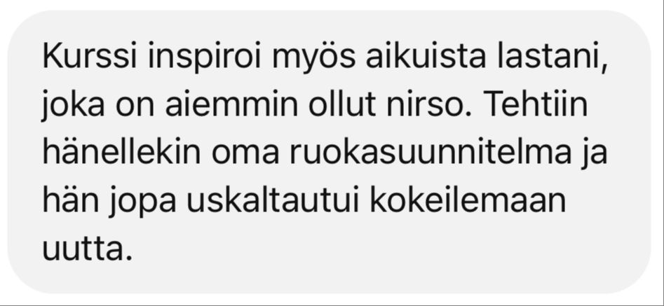 "Kurssi inspiroi myös aikuista lastani, joka on aiemmin ollut nirso."