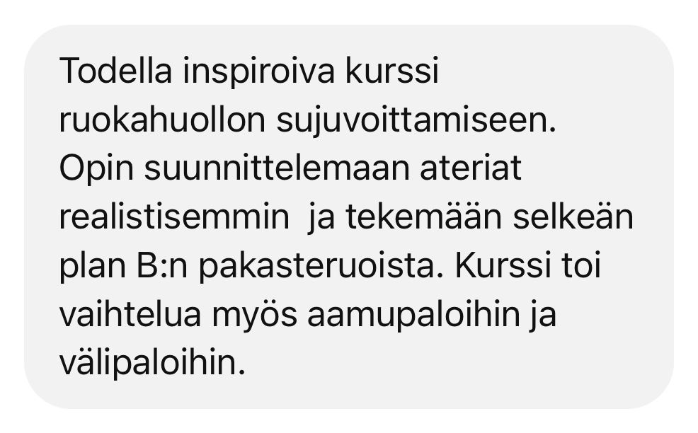 “Todella inspiroiva kurssi ruokahuollon sujuvoittamiseen.”
